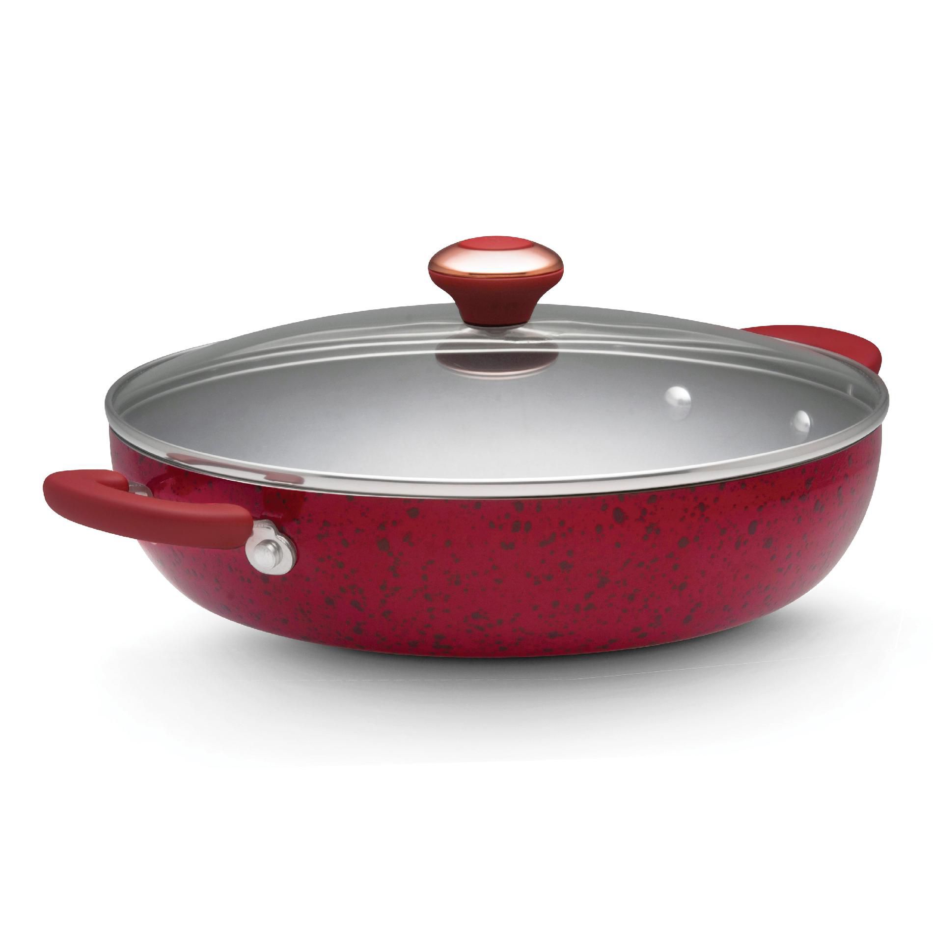 Paula Deen 12-inch Covered Chicken Fryer with 2 Side handles, Red 12 in.